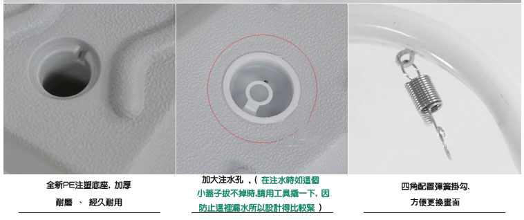 有16kg灌水座+烤漆鐵管四邊彈簧鈎之設計用於室外不帕風吹.